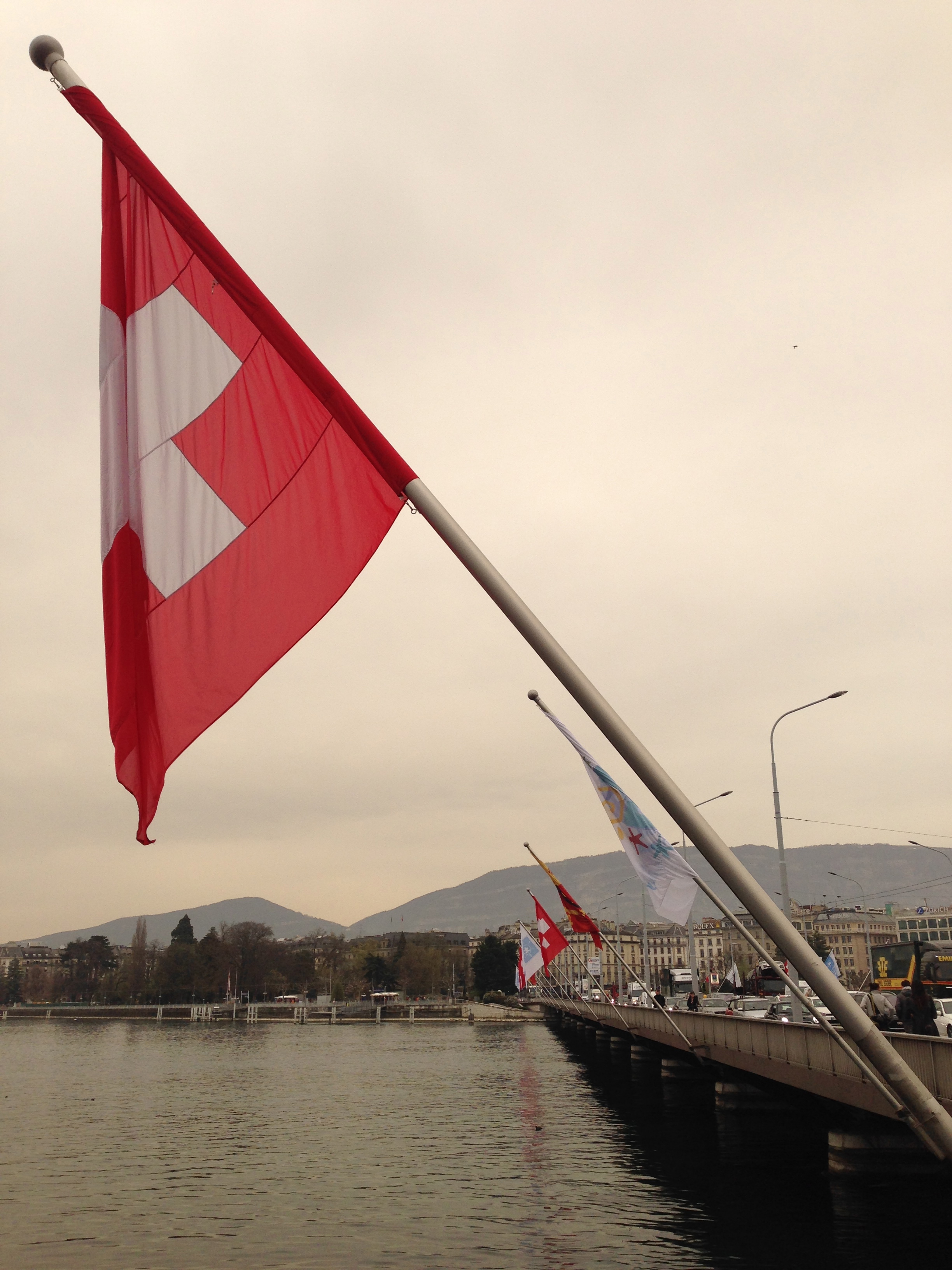 geneva-apr2014-back“… Upon arrival this early Spring morning, I crossed the Pont du Mont-Blanc towards the L’horloge Fleurie (flower clock) which was blooming on schedule as the over-sized hands rotated over the in-laid yellow flowers that were changed with seasonal precision.